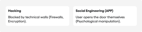 Years of investment in banking security, covering strong customer authentication, tokenisation, and biometrics, have forced criminals to change their attack vector. Instead of breaking through technical barriers, fraudsters now use social engineering, targeting the user directly. In the Authorised Push Payment (APP) model, the manipulated customer authorises the transfer to the criminal’s account themselves.